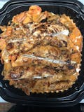 Penne pasta topped with alla Panna sauce (mix of alfredo & marinara sauce), mozzarella & ricotta cheese.